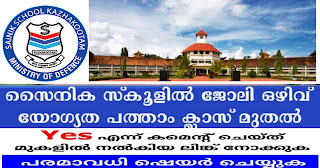| Job Vacancies in Kazhakootam Sainik School കഴക്കൂട്ടം സൈനിക് സ്കൂളിൽ ജോലി ഒഴിവുകൾ |